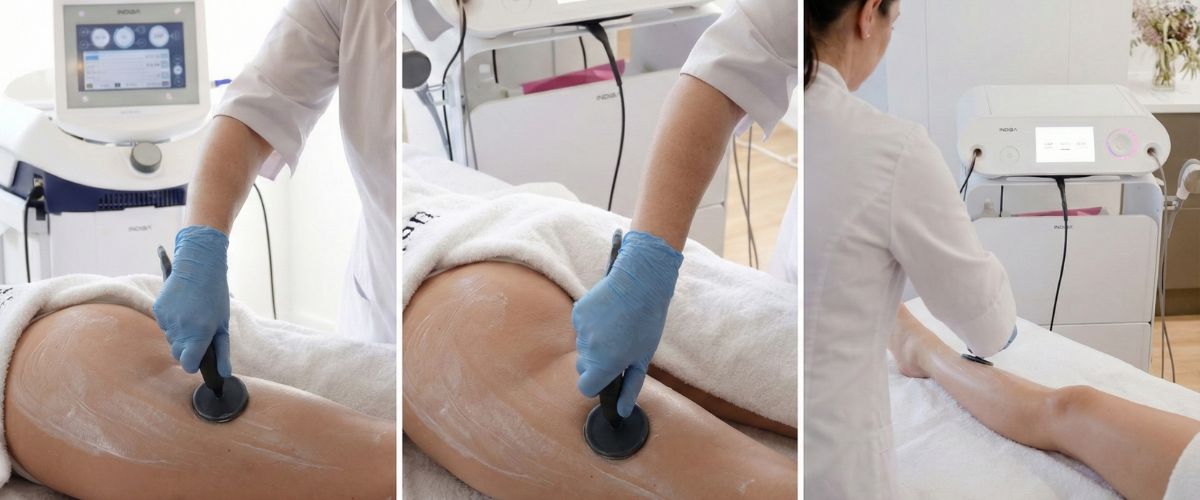 Utilizamos el electrodo capacitivo específico para tejidos superficiales y ricos en agua. Esta fase prepara la piel, aumenta la vascularización, oxigena el tejido y ayuda a drenar líquidos retenidos y toxinas.